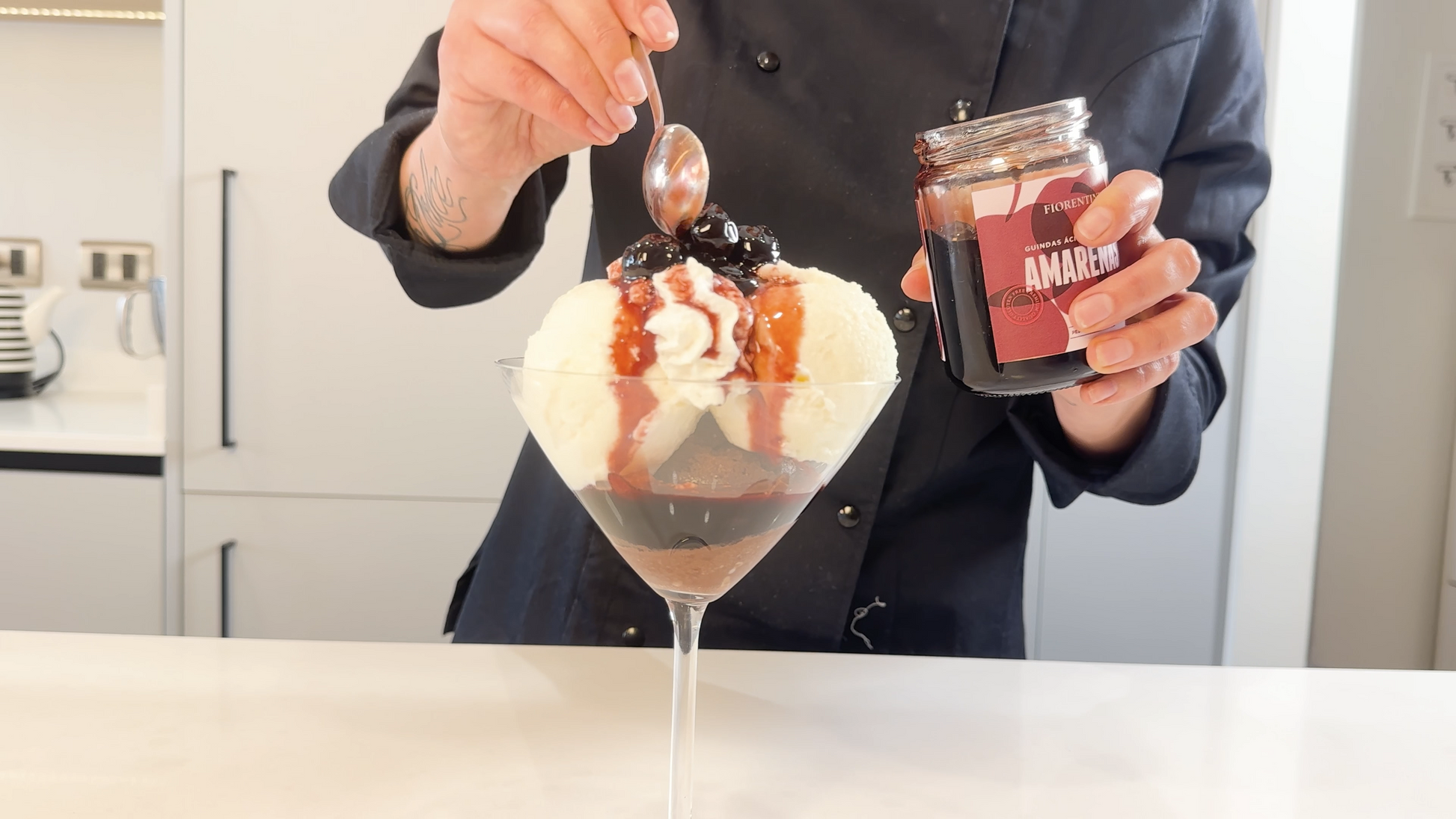 Merienda de Choco Hot Premium + helado y Amarenas