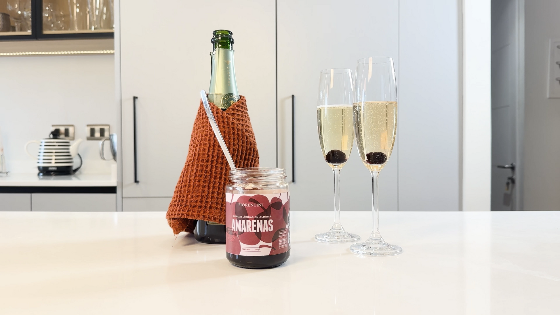 Aperitivo de prosecco o espumante con un poco de almibar y Amarenas